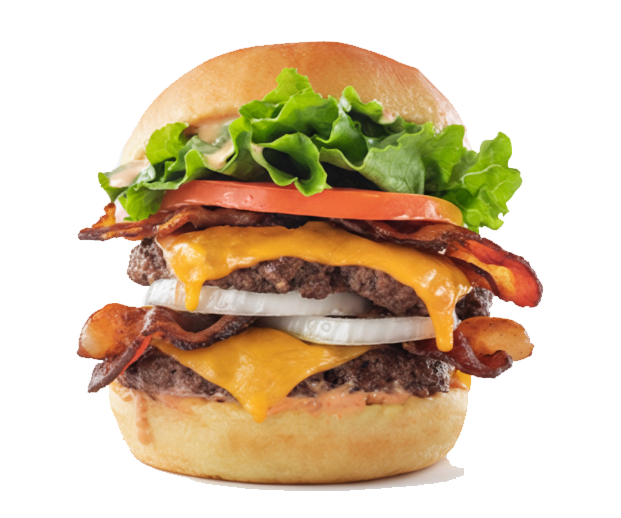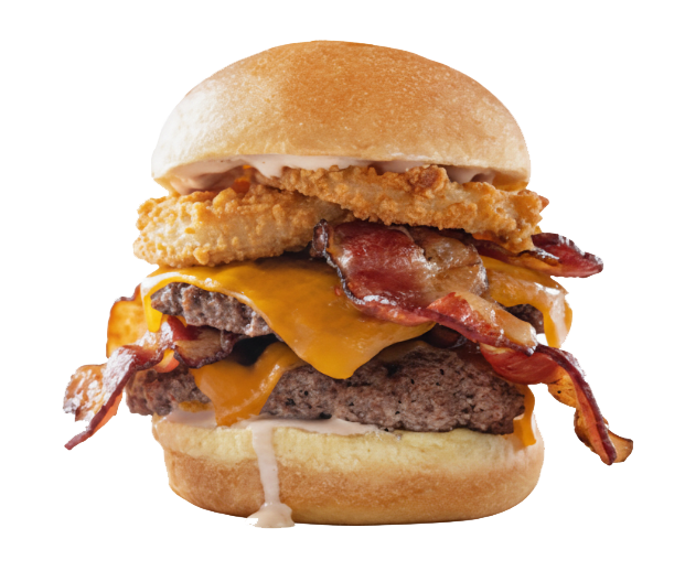 Double burger blastoff! Two Beef patties are grilled to perfection and topped with cheddar cheese,Bacon, lettuce, tomato, sliced onion and our homemade Special Sauce.