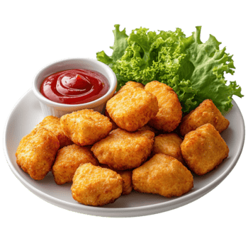 Nine pieces. Extra crispy fried nuggets. Max Mayo and Tomato Sauce are the sauce choices available.
